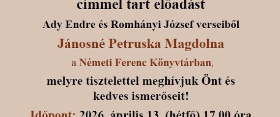 "Vérem népe, magyar népem" címmel tart előadást Jánosné Petruska Magdolna a könyvtárban!
