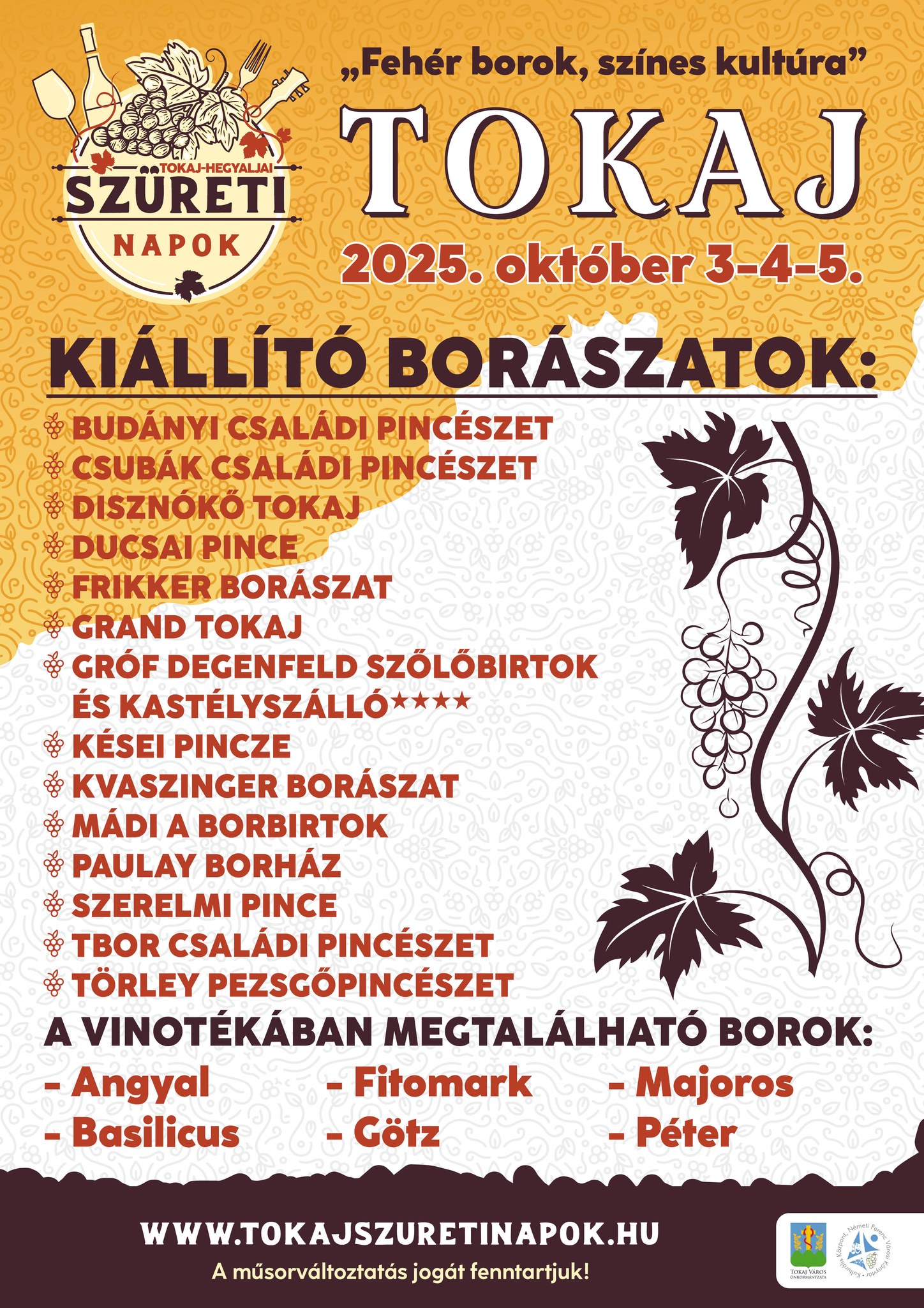Bővebb információ: a Tokaj-hegyaljai Szüreti Napok Facebook oldalon.