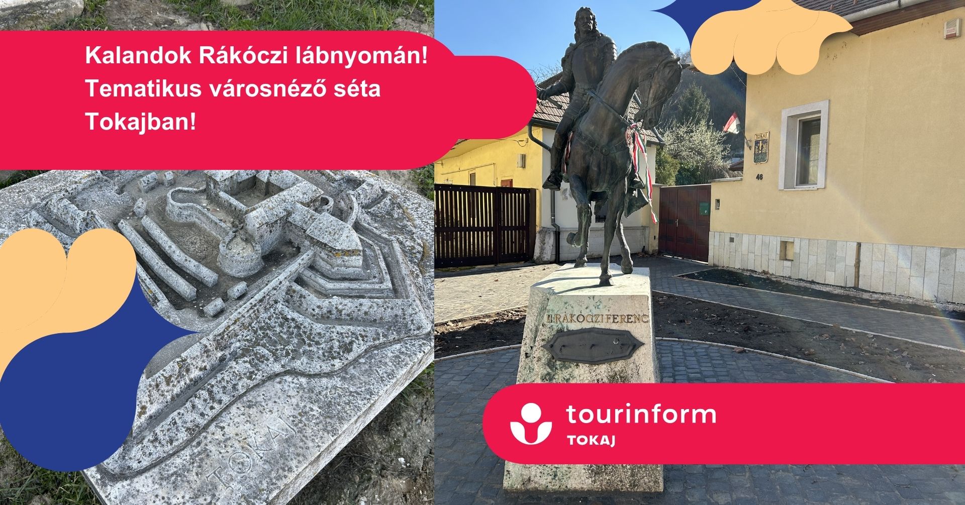 Fedezd fel Tokaj történelmét II. Rákóczi Ferenc nyomában! Egy izgalmas városnéző sétára hívunk, ahol megelevenedik a múlt. Elsőként a Kiss Albert-szobornál ismerheted meg Rákóczi egyik hadvezérének drámai történetét. A Bodrog-parti sétányról ráláthatsz arra a területre, ahol egykor a tokaji vár állt. A Hősök terén található Rákóczi-vár makettek bemutatják a fejedelemhez kapcsolódó várakat. A Rákóczi lovas szobornál megismerheted a görög kereskedők történetét, akik Rákóczinak köszönhetően telepedtek le Tokajban. A Rákóczi Pince évszázados titkai után a Tokaji Múzeumban a tokaji vár feltárt kincsei várnak rád.