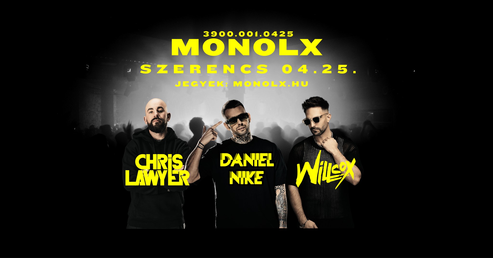 A MONOLX egy modern elektronikus zenei éjszaka, ahol a hang és a fény együtt teremtenek intenzív atmoszférát. Három underground DJ építi fel az estét az indulástól a csúcsig — nyers, őszinte és kompromisszummentes hangzással.