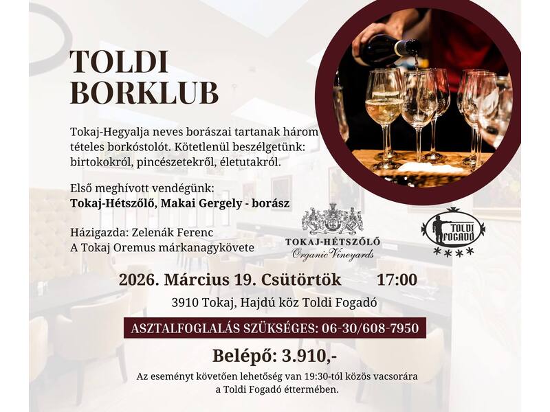 2026. március 19., 17.00 | Toldi Fogadó | Tokaj