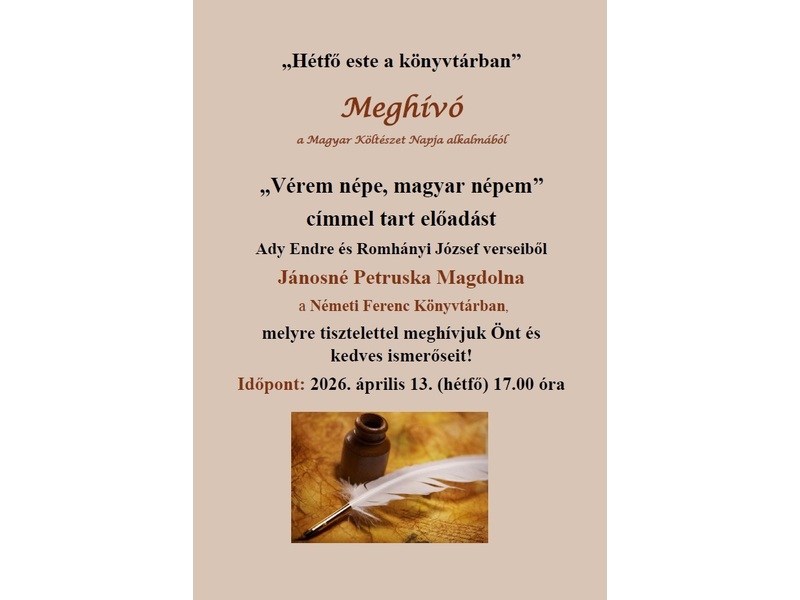Elolvasom"Vérem népe, magyar népem." | Hétfő este a könyvtárban